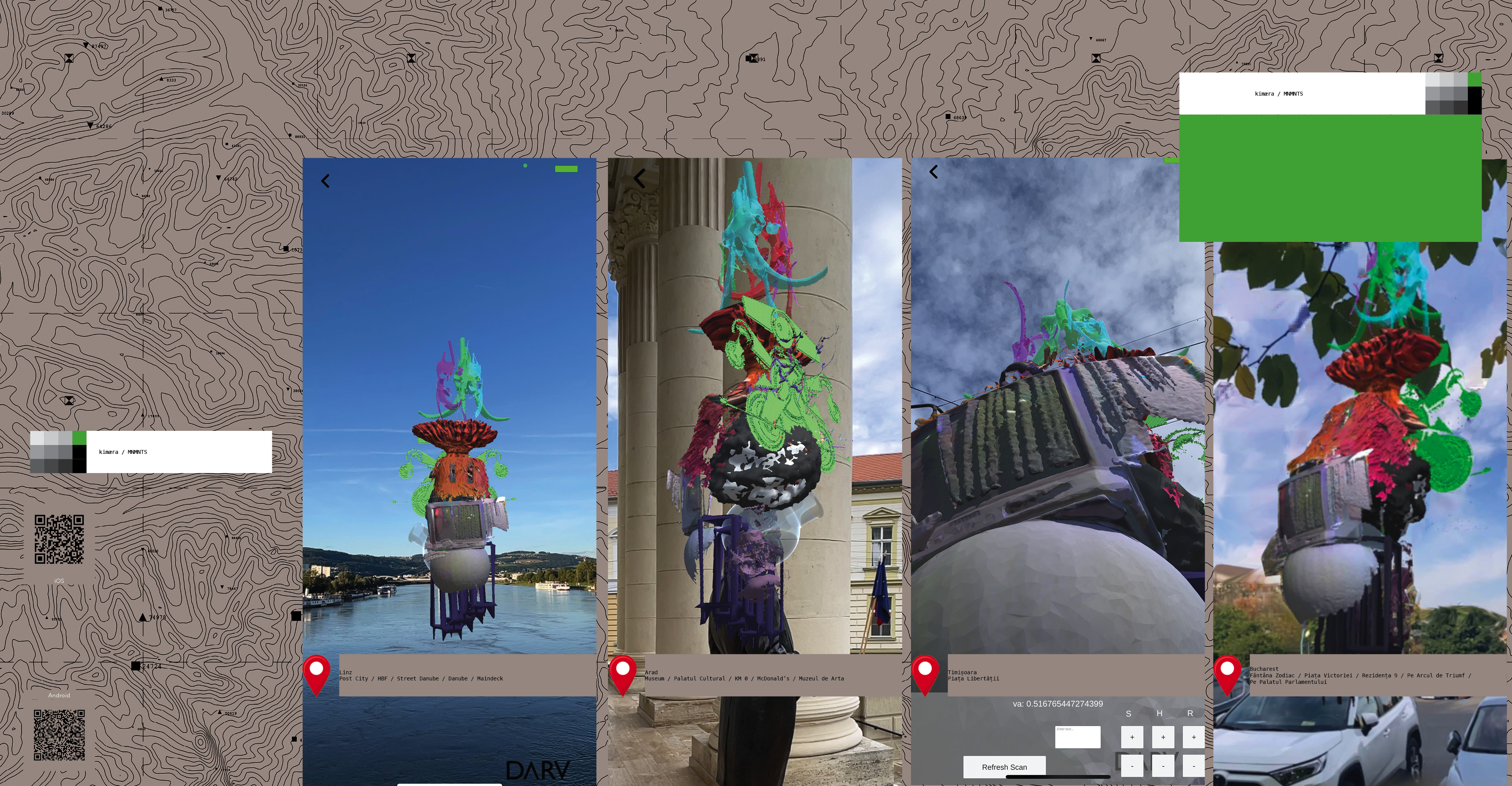 2023 kimæra MNMNTS / AR app. powered by DARV.org, Arad, Timișoara, Linz, Bucharest